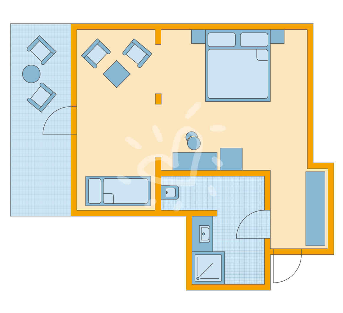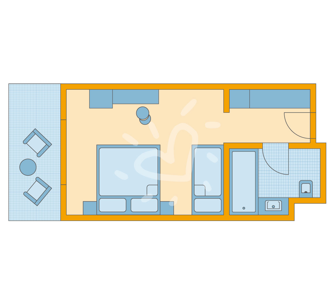 Details anzeigenBad mit Dusche, ohne Meerblick, ca. 21 m², Zustellbett: ca. 100 x 200 cm. Einzelzimmer sind Doppelzimmer zur Alleinbenutzung. Auch als Single mit Kind-Zimmer möglich.