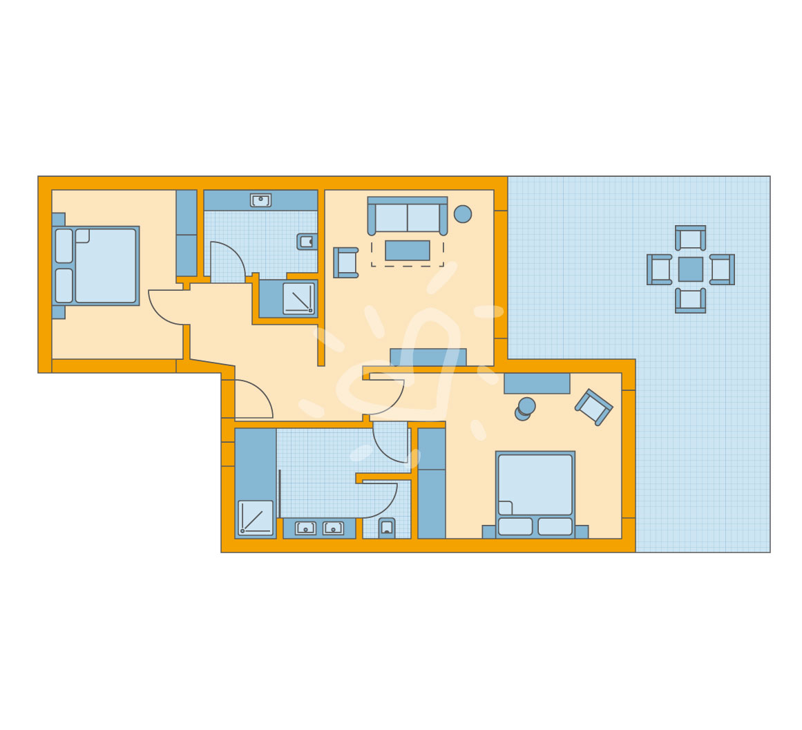 Klimaanlage: individuell regelbar, zentral gesteuert, kalt, warm Fußboden: Fliesenboden Safe: ohne Gebühr Sofa Kühlschrank Telefon, Internet: WLAN/WiFi: ohne Gebühr, Fernseher: Flatscreen, deutsches Programm, Sat-TV, Radio Reinigungsservice: täglich Dusche, WC, 2 Bäder, Föhn, Kosmetikspiegel Terrasse: mit SitzgelegenheitSafeWLANTVKlimaanlageMeerblickBalkonFamily Room Economy