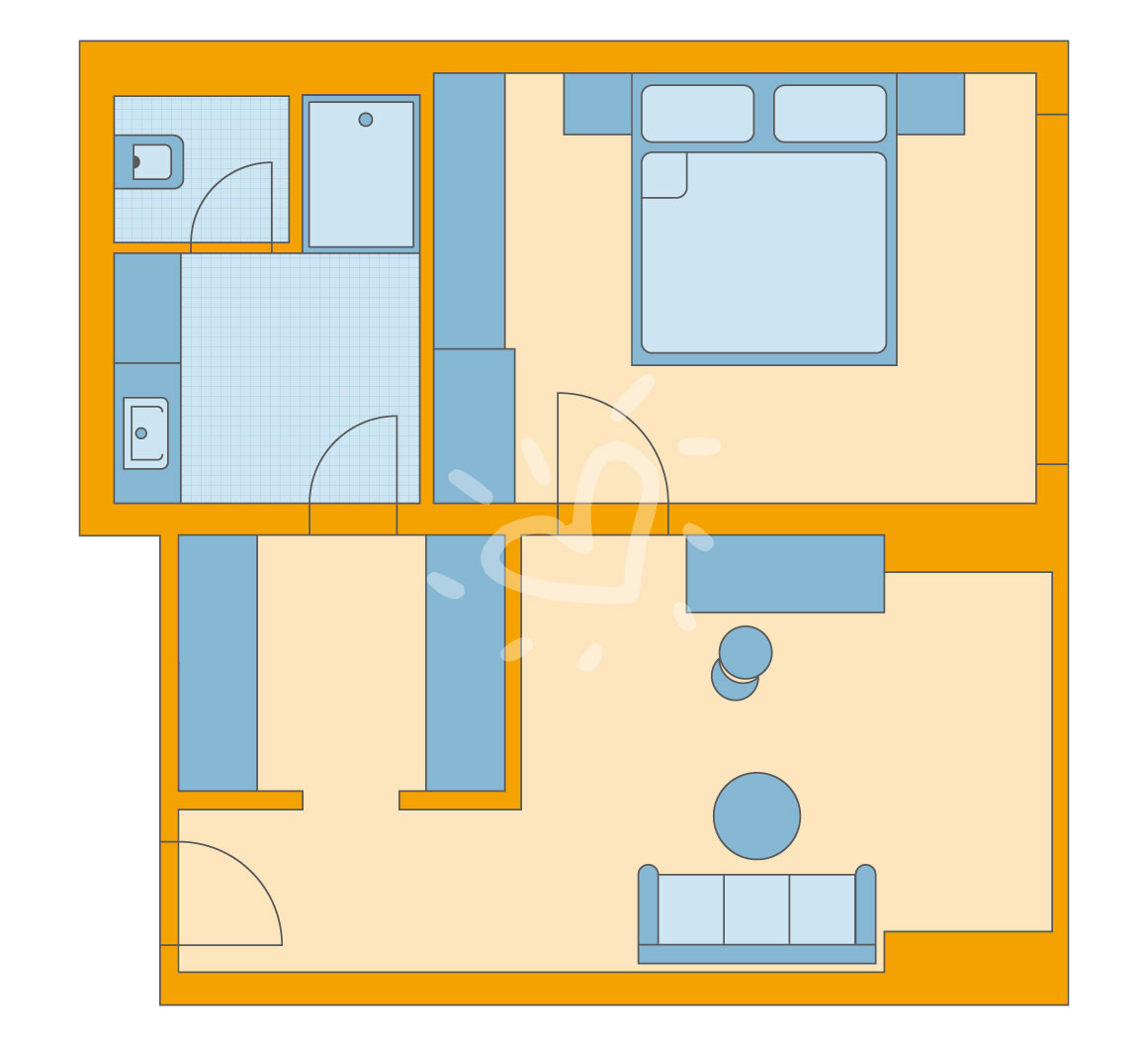 Details anzeigenFür 4-6 Personen. 2 Doppelzimmer Superior mit Verbindungstür, je Doppelzimmer ein Bad mit Dusche, ca. 50 m². 2 Schlafsofas: ca. 90x200 cm.